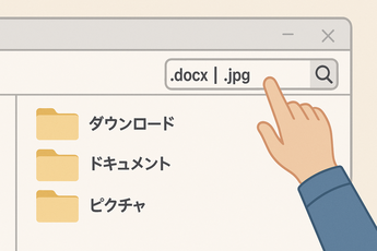さらにエクスプローラー右上の検索窓で、ファイル名の一部や 「.docx」「.jpg」など拡張子で検索すると見つけやすいです。