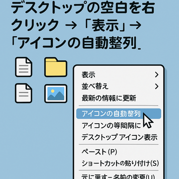 デスクトップの空白部分を右クリック → 「表示」→「アイコンの自動整列」