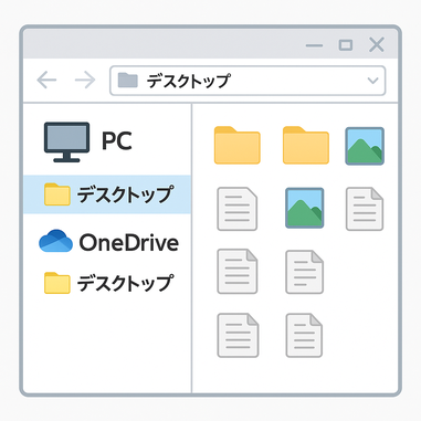 「PC → デスクトップ」「OneDrive → デスクトップ」を両方確認しましょう。
