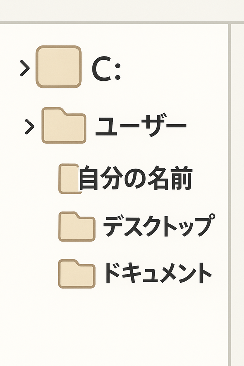 C: → ユーザー → 自分の名前 → デスクトップ / ドキュメント を順に開いて確認。