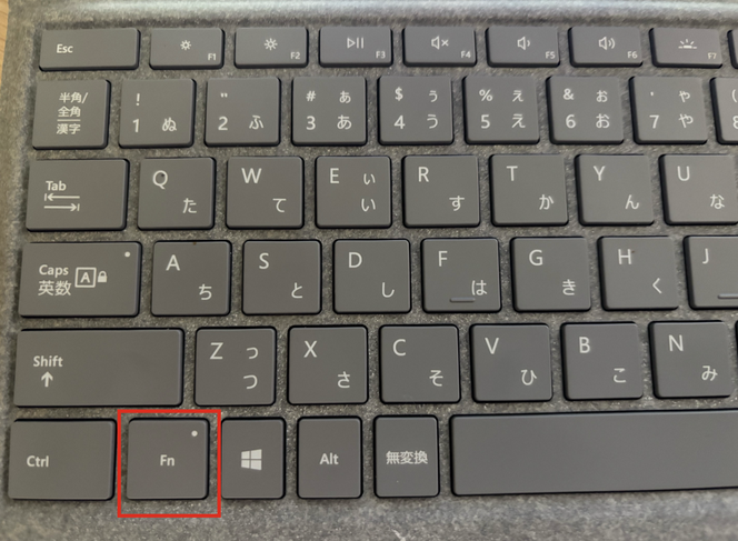 alt: Surface Proのキーボードで赤枠で示されたFnキーの位置
