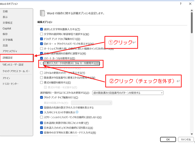 何度も起こる人は、Wordの設定で「上書きモードを使わない」ようにしてしまうのが一番安心です。