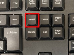 Deleteキーの近くにある「Insert」または「Ins」を一度押します。